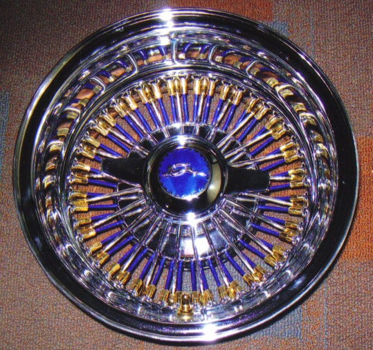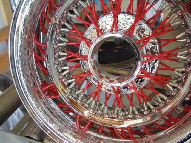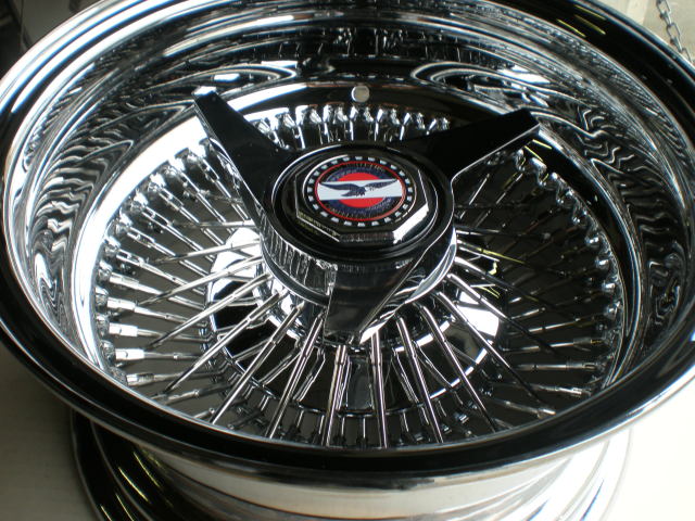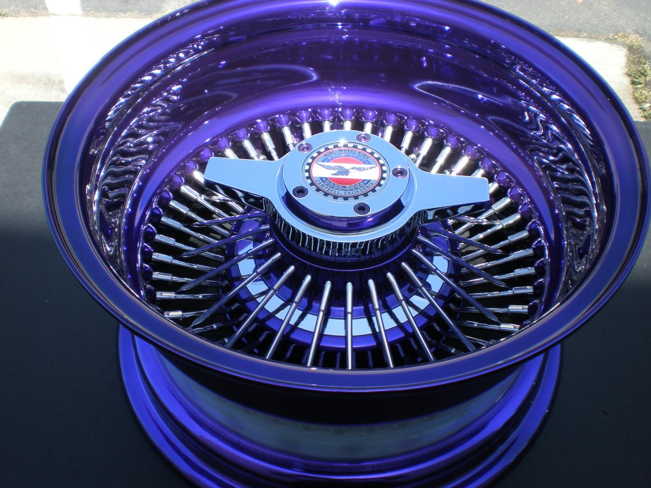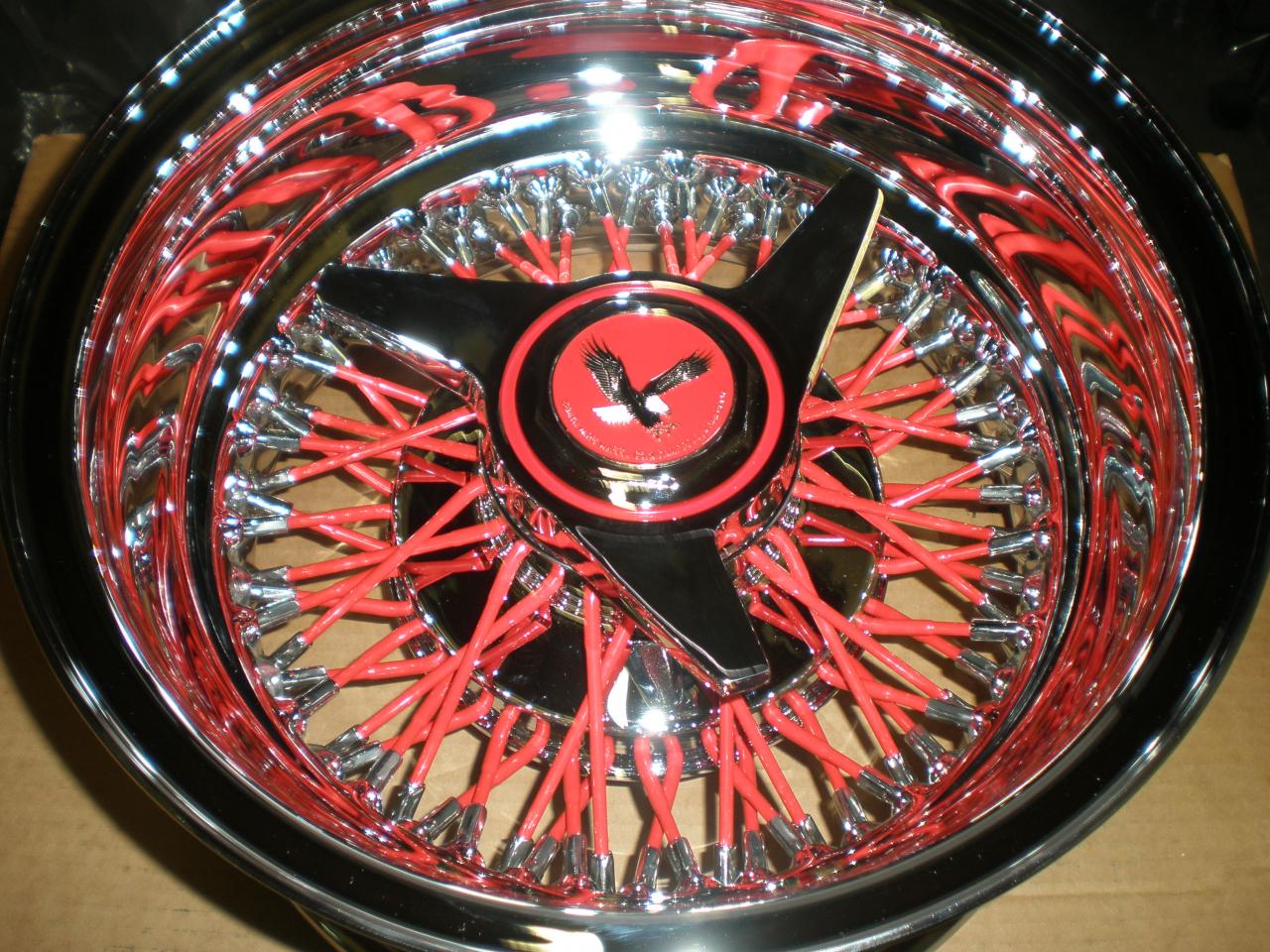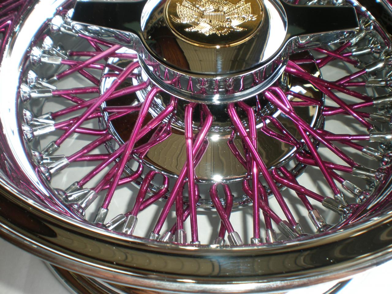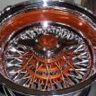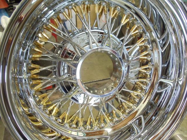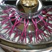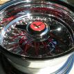 We offer a 72 spoke straight or crosslace with triple plated chrome and top quality 24 karat gold plating.Powder coating is also available in high gloss and kandy colors.We also offer one of the best quality engraving on the market.