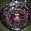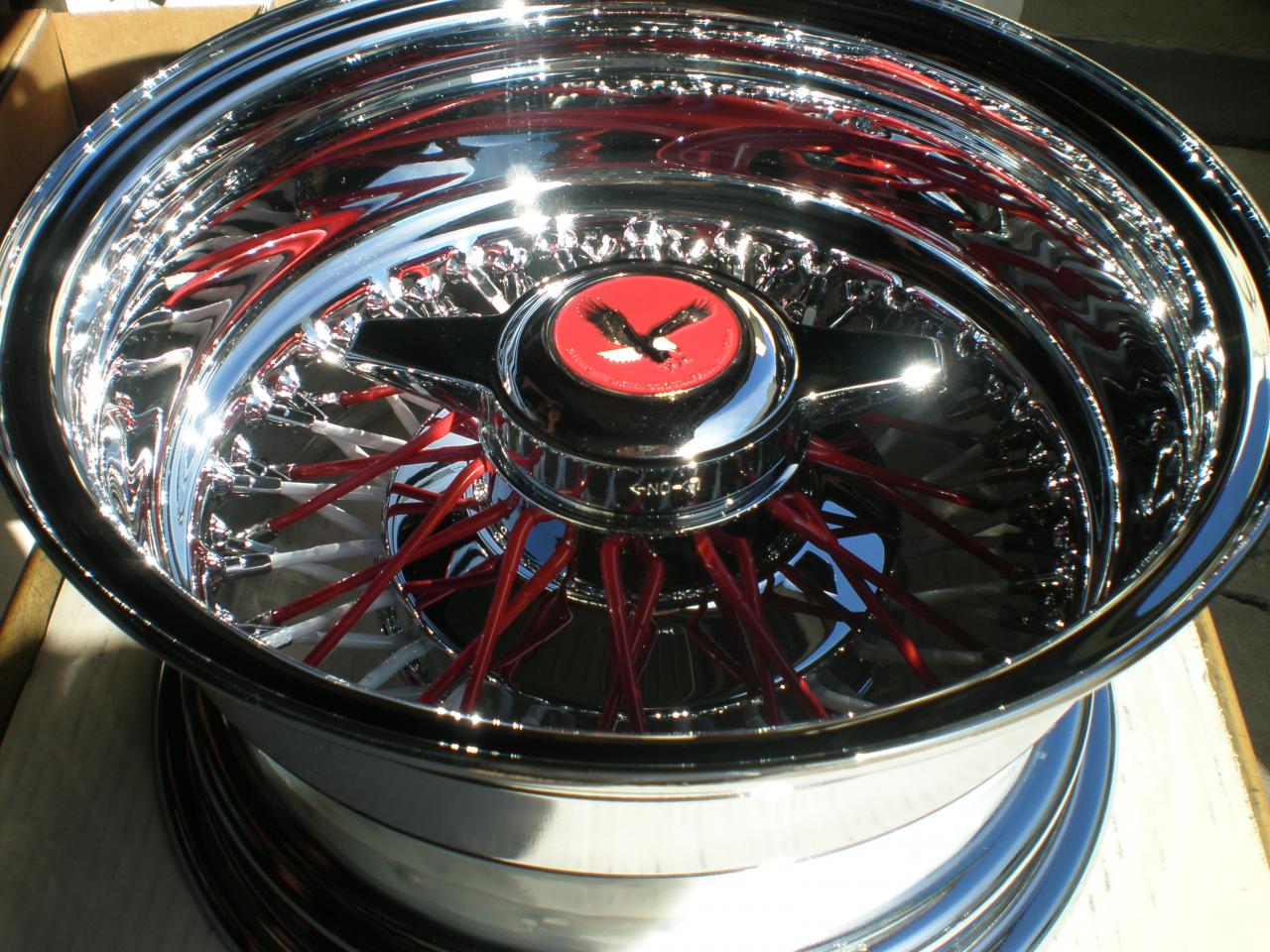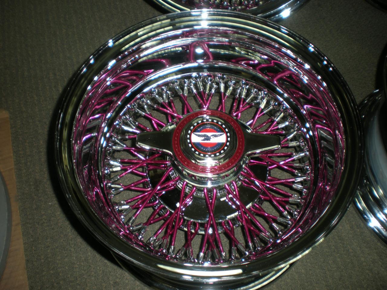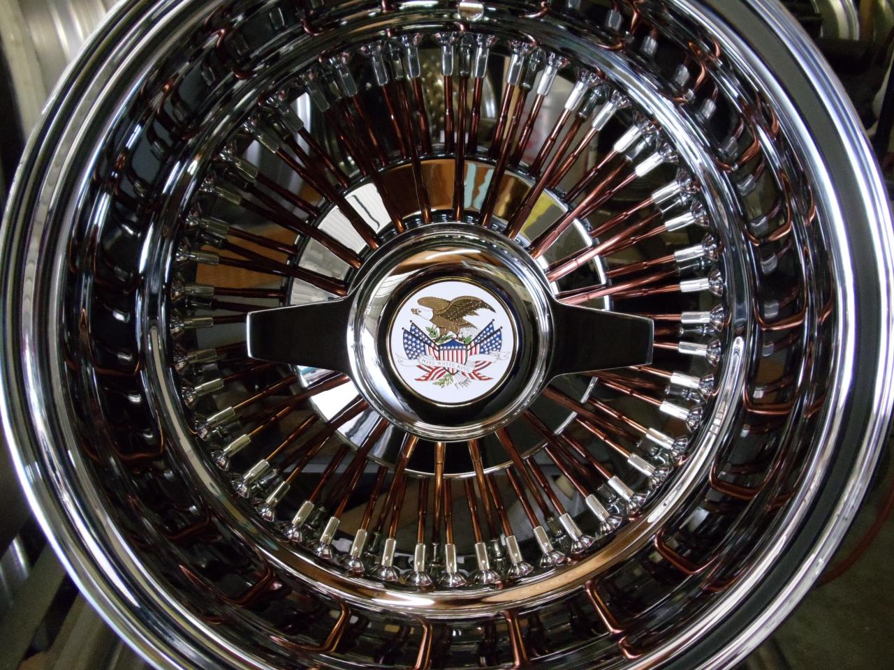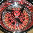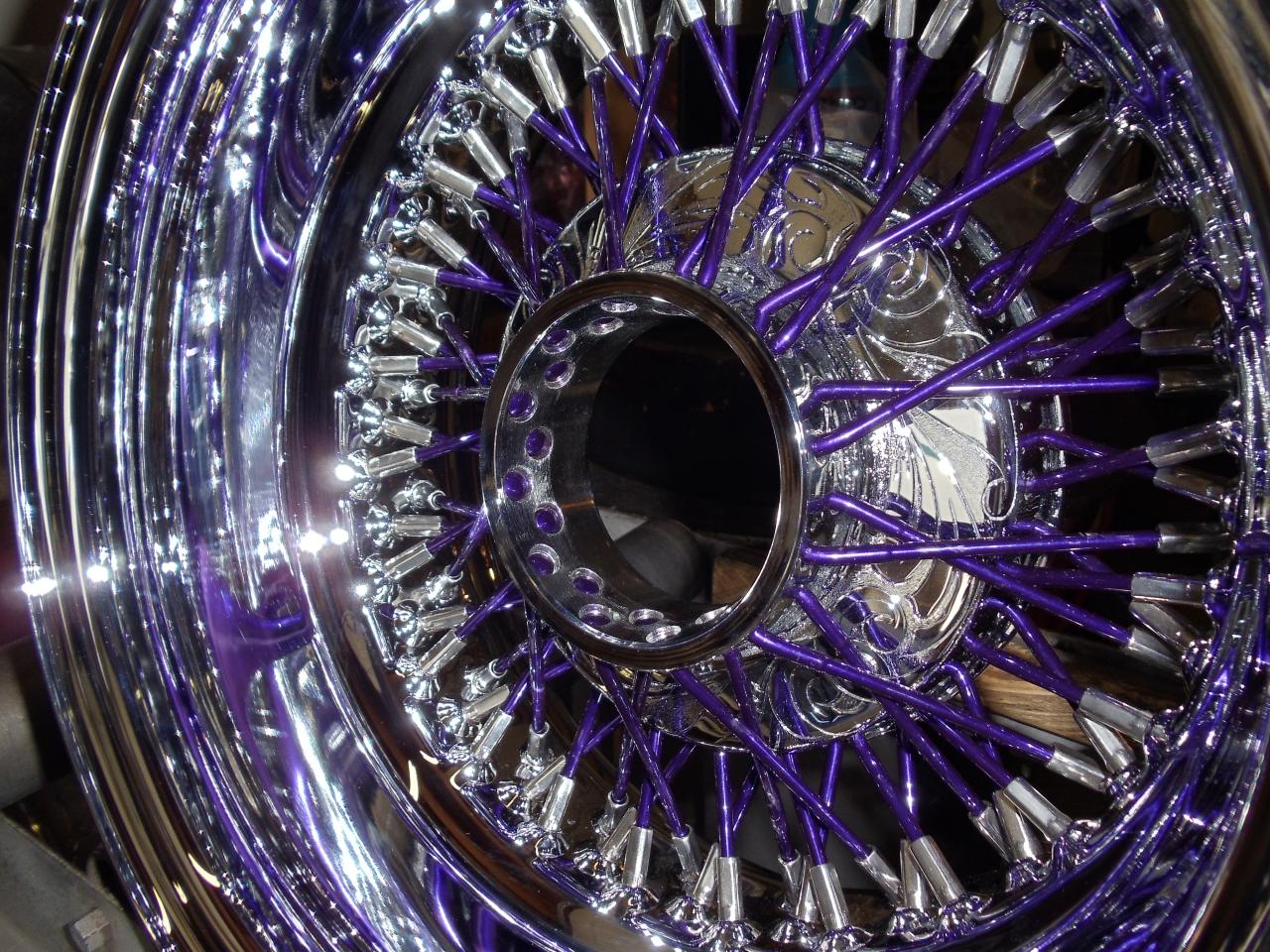 We offer a 72 spoke straight or crosslace with triple plated chrome and top quality 24 karat gold plating.Powder coating is also available in high gloss and kandy colors.We also offer one of the best quality engraving on the market.